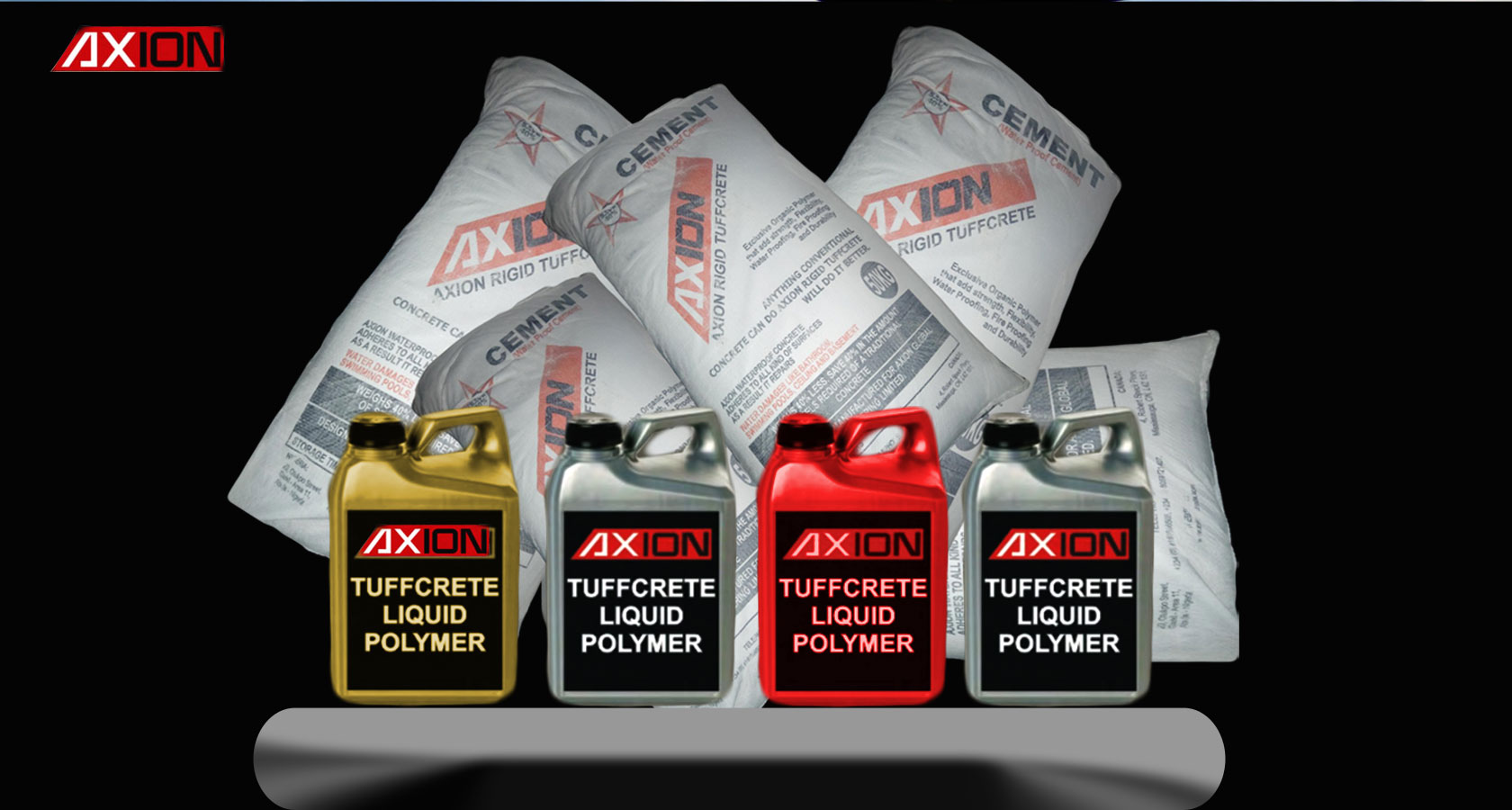 The Axion TuffCrete for your early high strength, light weight water proof concrete is a powerful molecular activator which replaces water normally used to batch ready-made concrete. This innovative modern organic polymer ensures greater tensile strength and its less brittle than normal cement concrete which is susceptible to deformation.
